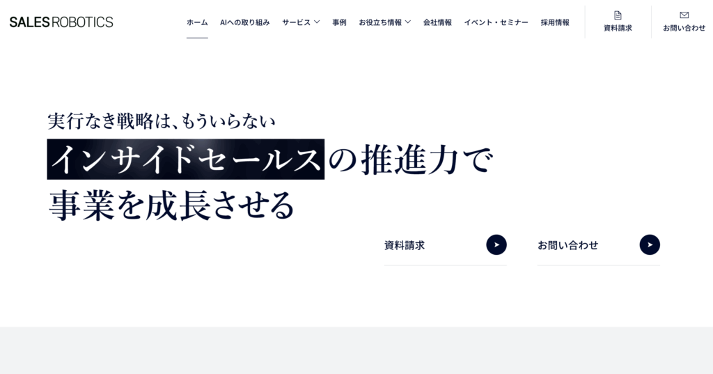 SALES ROBOTICSは、2014年創業以来、1,000社以上の企業にインサイドセールス支援を提供してきた専門企業です。大企業からスタートアップまで幅広い業種で2,000以上の商材販売を支援した経験を活かし、独自に集約した営業データを分析して優先アプローチすべきターゲットリストを提案するなど、データドリブンな戦略立案と実行が特徴です。