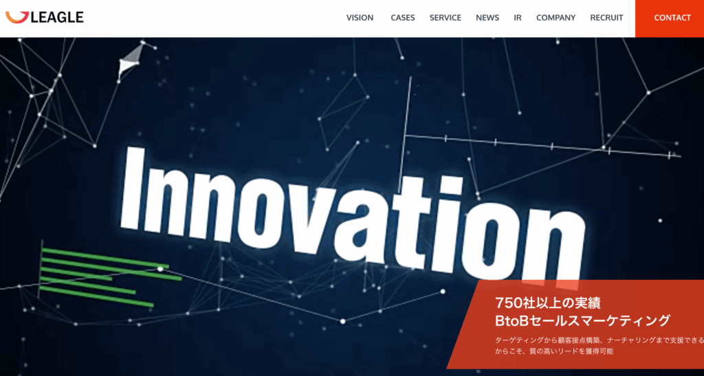 リード獲得からリード育成、受注活動支援まで網羅しており、クライアントの営業プロセス全体を継続率91%という高い水準で支援している点が強みです。