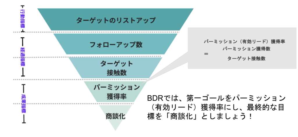 ここで重要なのは、本事例のようにBDRは今すぐ客が少ない前提で設計することです。商談だけを追うとリストが枯渇しますが、