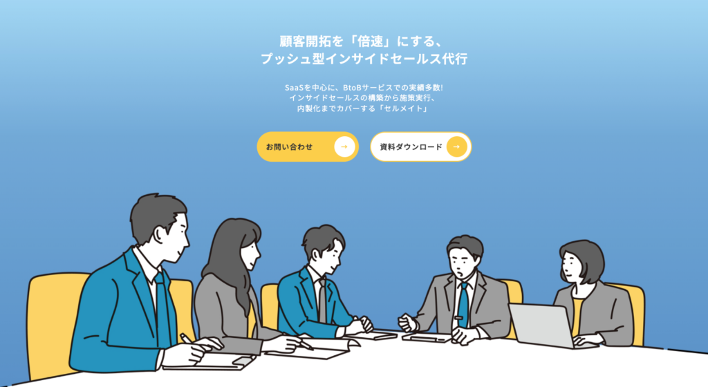そのため、社内に上記の条件が揃っていない場合はプッシュ型インサイドセールス代行「セルメイト」へご相談ください。